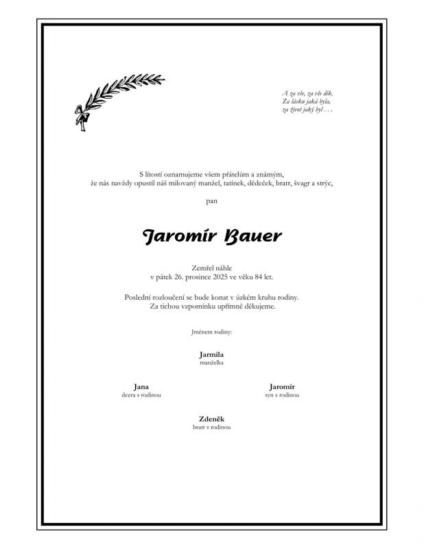 Ve věku 84 let nás opustil kamarád Jaromír Bauer st. Za celou osadu bychom chtěli vyjádřit celé rodině upřímnou soustrast.